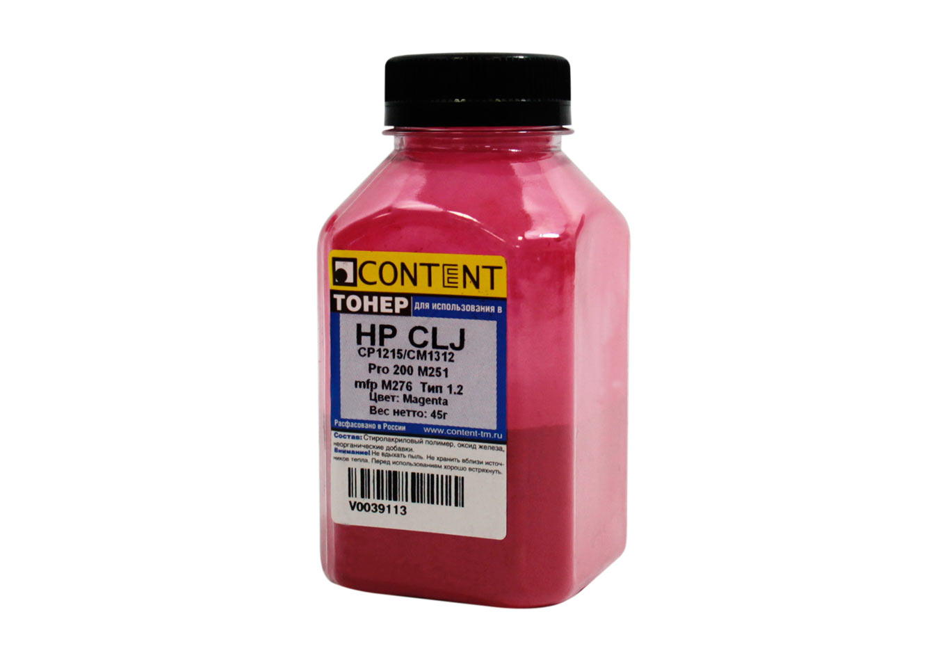 Тонер Content для HP CLJ CP1215/CM1312/Pro 200 M251/mfp M276, Тип 1.2, M, 45 г, банка