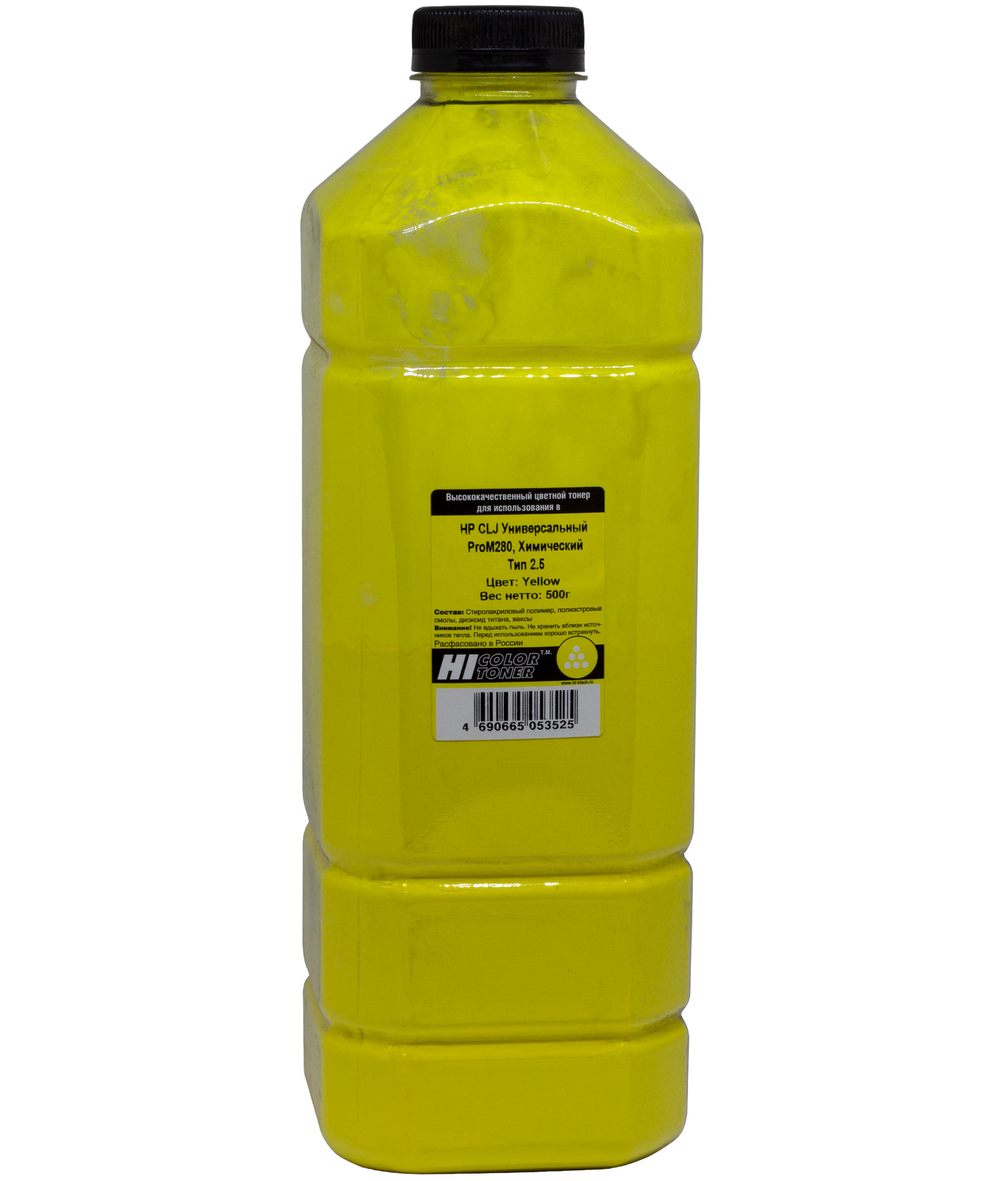 Тонер Hi-Black Универсальный для HP CLJ ProM280, Химический, Тип 2.5, Y, 500 г, канистра