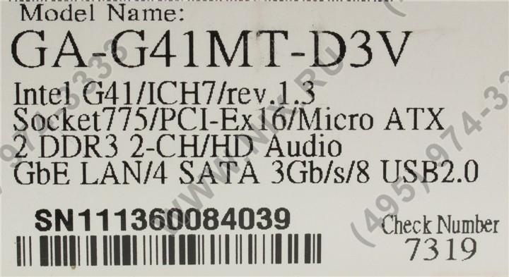 | Чипсет мат. Платы | Intel G41 (82G41 + NH82801GB (ICH7)) |