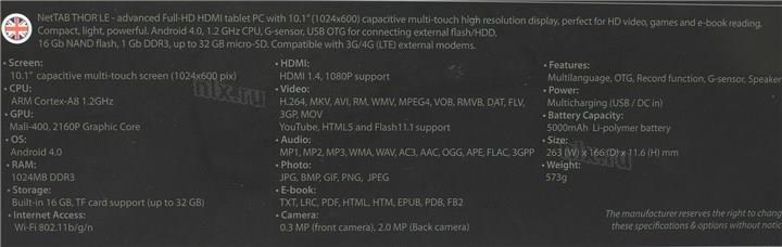 | Разъемы планшета | micro USB 2.0 OTG, micro USB 2.0, Mini HDMI, разъем для наушников |