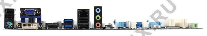| Порты | 1x PS/2 клавиатура/мышь, 2x USB 3.0, 4x USB 2.0, 1x RJ-45 LAN, 1x VGA монитор, 1x DVI-D, 1x HDMI, Line-out, Line-in, Mic-in |