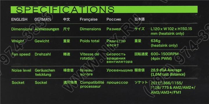 | Совместимость вентилятора | Socket LGA2011 Square ILM, Socket LGA2011, Socket LGA1366, Socket LGA1150,Socket LGA1155, Socket LGA1156, Socket LGA775, Socket AM3 plus, Socket FM1, Socket FM2 plus, Socket FM2, Socket AM3, Socket AM2 plus, Socket AM2 |